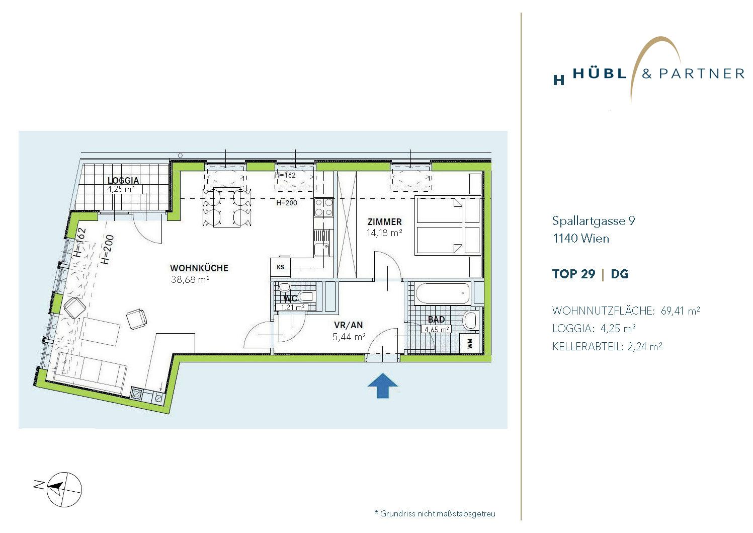 Das Herzstück der Wohnung ist die großzügige Wohnküche inkl. einer EWE-Maßeinbauküche samt NEFF-Geräten. Ein sehr geräumiges Schlafzimmer, ein geschmackvolles Wannenbad sowie ein gut nutzbarer Vorraum vervollständigen das angenehme Wohnambiente. Der Wohnbereich ist mit Echtholz-Fertigparkett, die Nass- und Nebenräume sind mit keramischen Belägen ausgestattet.