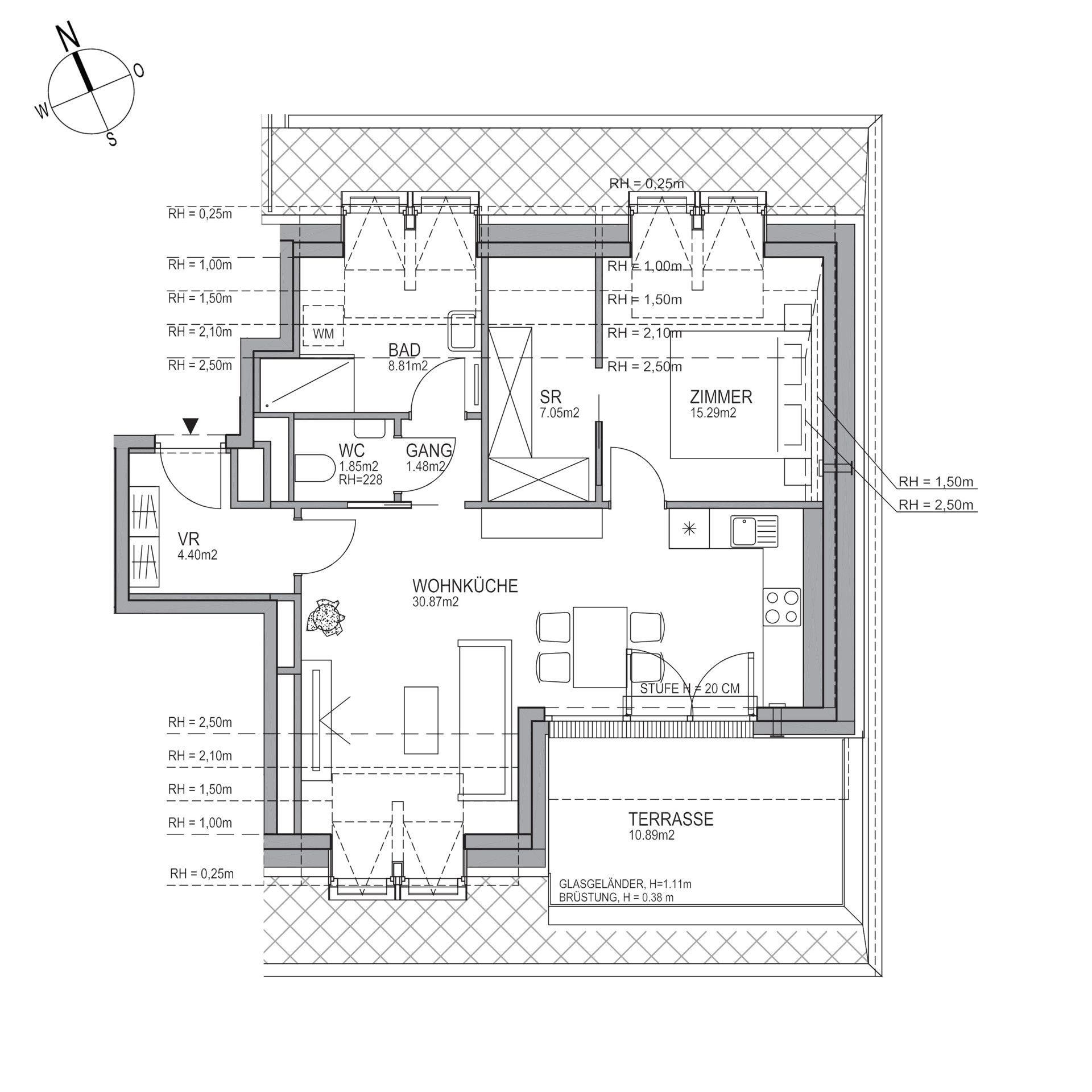 Im Dachgeschoß liegt diese klimatisierte wunderschöne 2-Zimmer Wohnung TOP 27 mit einer Wohnnutzfläche von 69,75 m². Den zentralen Mittelpunkt der Wohnung bildet die helle Wohnküche, diese hat Zugang zur großzügigen Terrasse. Ein besonderes Highlight ist das geräumige Schlafzimmer mit eigenem Schrankraum. Das moderne Bad mit Dusche und Waschmaschinenanschluss sowie ein getrenntes WC mit Handwaschbecken vervollständigen die Wohnung Für ein ganzjährig angenehm temperiertes Raumklima sorgen - zusätzlich zur Bauteilaktivierung - die Klimaanlage und die funkgesteuerte, elektrische Außenbeschattung. Ergänzt wird der Wohnkomfort durch hochwertige 3-fach isolierte Holz-Alu-Fenster, die Ruhe im Innenraum schaffen.