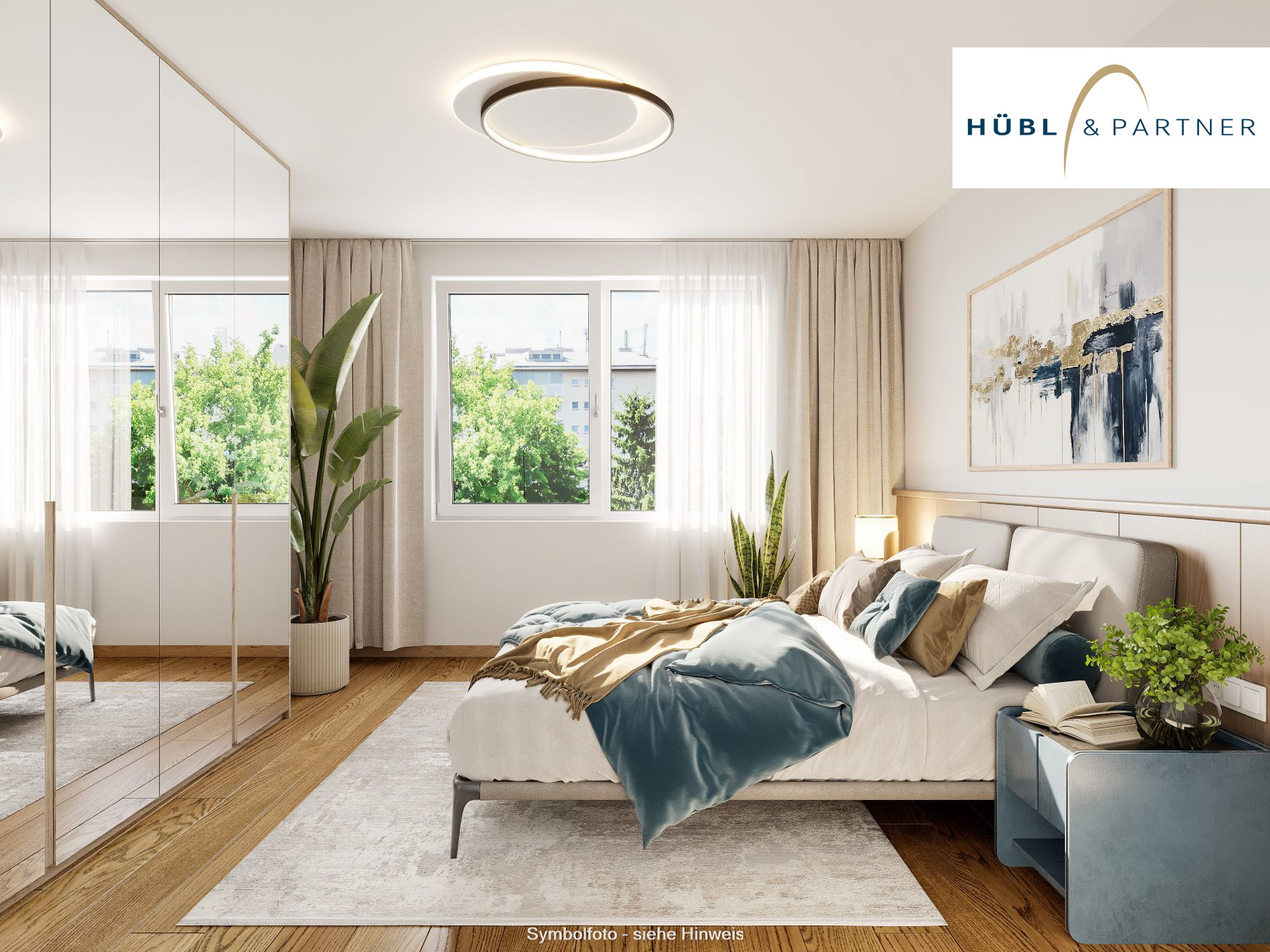 - Die Bilder sind als Beispiele angeführt. Die Aufteilung der jeweiligen Wohnung ist dem Grundriss zu entnehmen. Sämtliche Visualisierungen sind Symboldarstellungen und müssen nicht der Wohnung entsprechen.