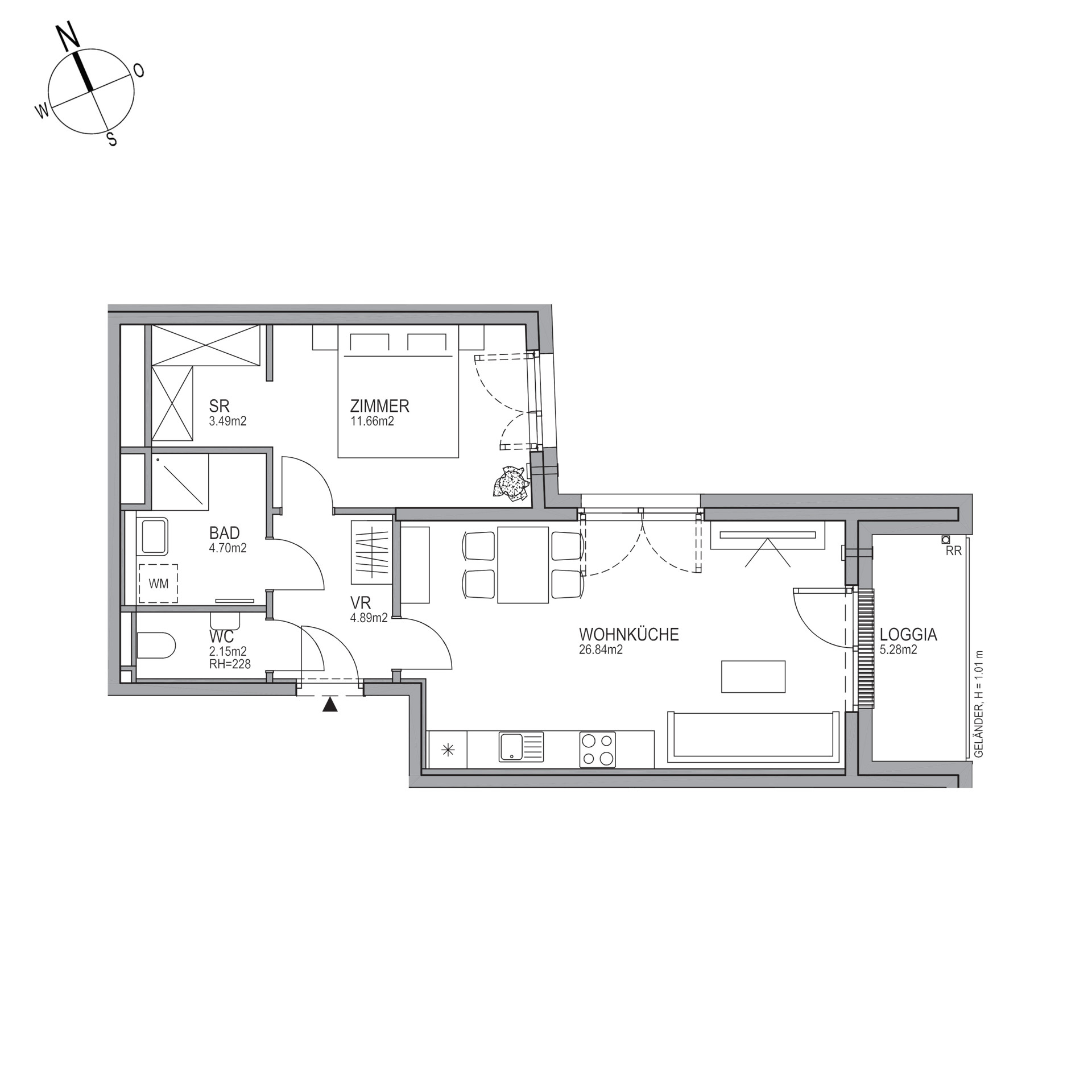 - Die Bilder sind als Beispiele angeführt. Die Aufteilung der jeweiligen Wohnung ist dem Grundriss zu entnehmen. Sämtliche Visualisierungen sind Symboldarstellungen und müssen nicht der Wohnung entsprechen.