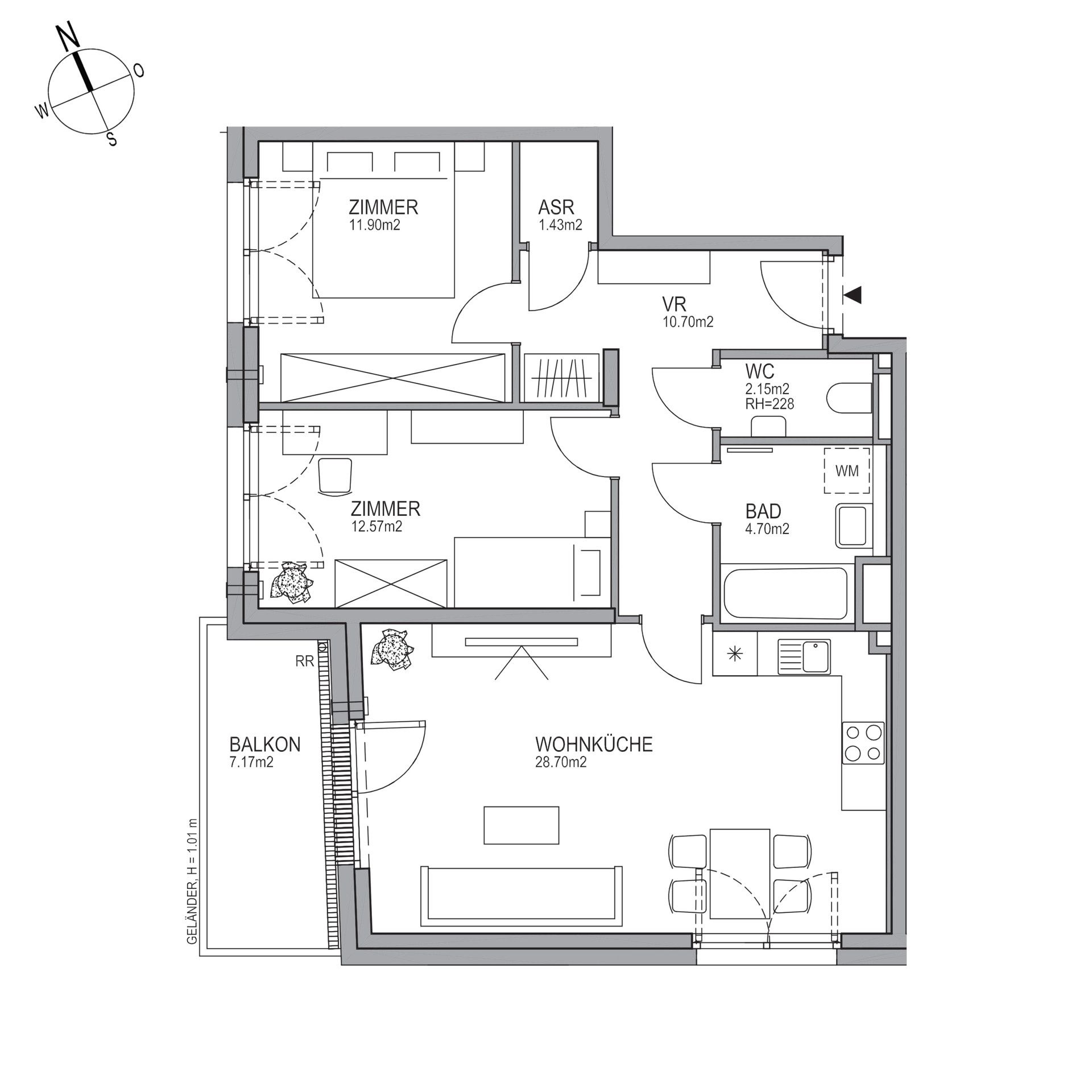 - Die Bilder sind als Beispiele angeführt. Die Aufteilung der jeweiligen Wohnung ist dem Grundriss zu entnehmen. Sämtliche Visualisierungen sind Symboldarstellungen und müssen nicht der Wohnung entsprechen.