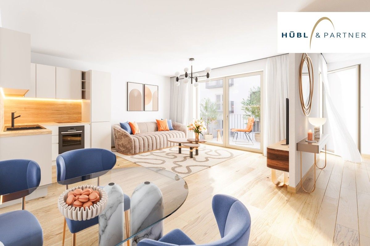 Den zentralen Mittelpunkt der Wohnung bildet die helle Wohnküche. Diese ist direkt mit dem nach Westen ausgerichteten 5,83 m² großen Balkon verbunden, welcher in den ruhigen Innenhof des Wohnbauprojekts blickt. Das Schlafzimmer ist als Ruhepol der Wohnung und als Ihr persönlicher Rückzugsort konzipiert.