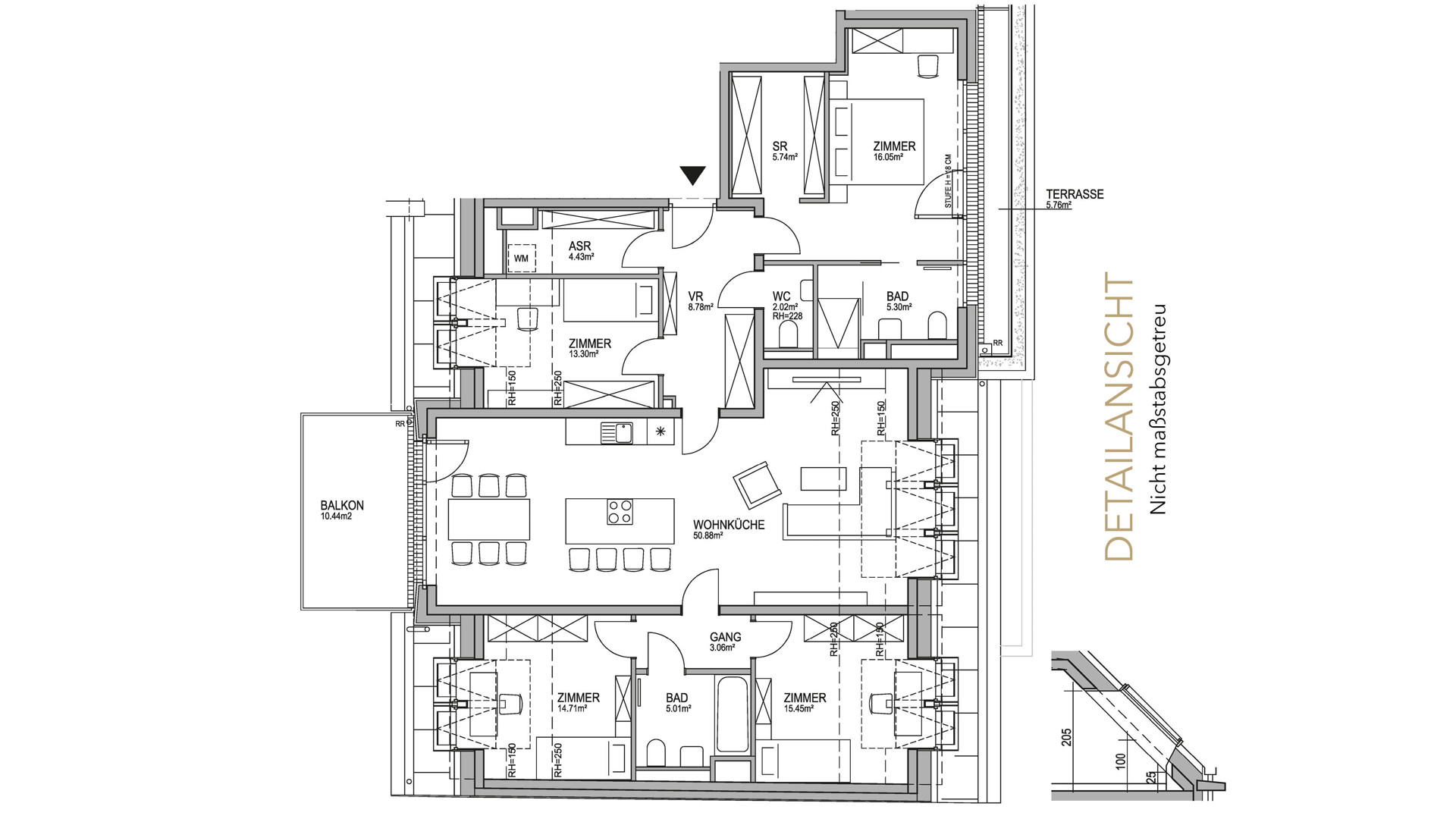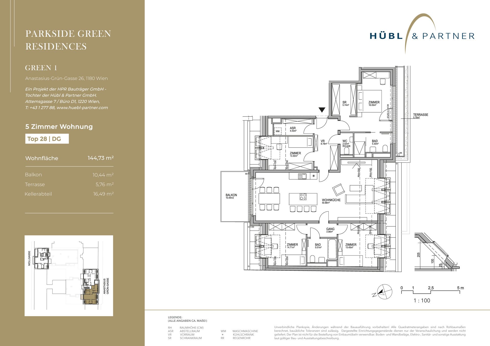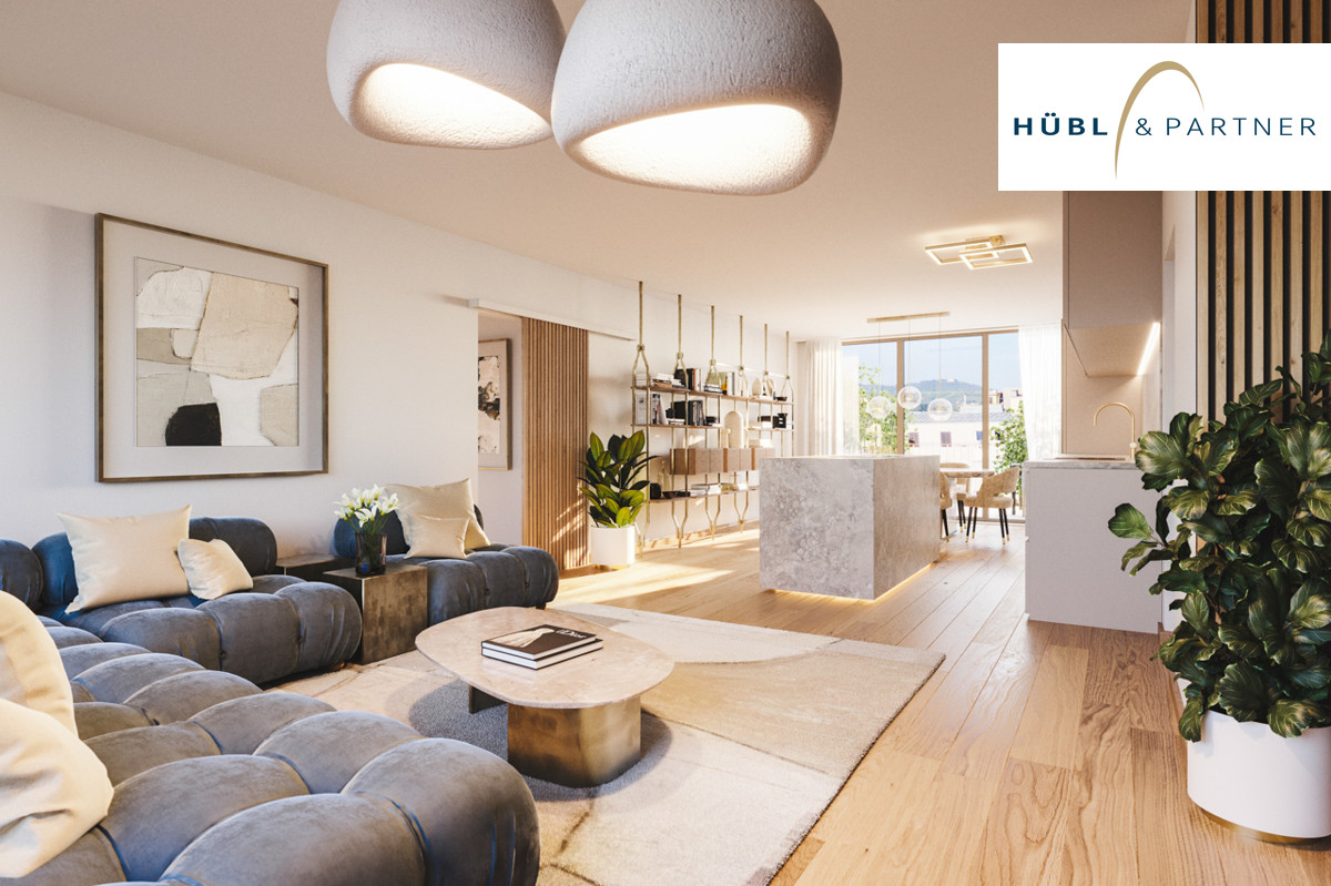 Diese klimatisierte 5-Zimmer Dachgeschoßwohnung TOP 1.28 bietet mit einer Wohnfläche von über 144 m² sogar einen Blick auf den Leopoldsberg. Wer Exklusivität zu schätzen weiß und gehobene Ansprüche an Ausstattung und Qualität stellt, findet hier sein neues Zuhause. Der zentrale Mittelpunkt ist die über 50 m² große sonnendurchflutete Wohnküche mit Zugang auf den 10 m² großen Balkon.