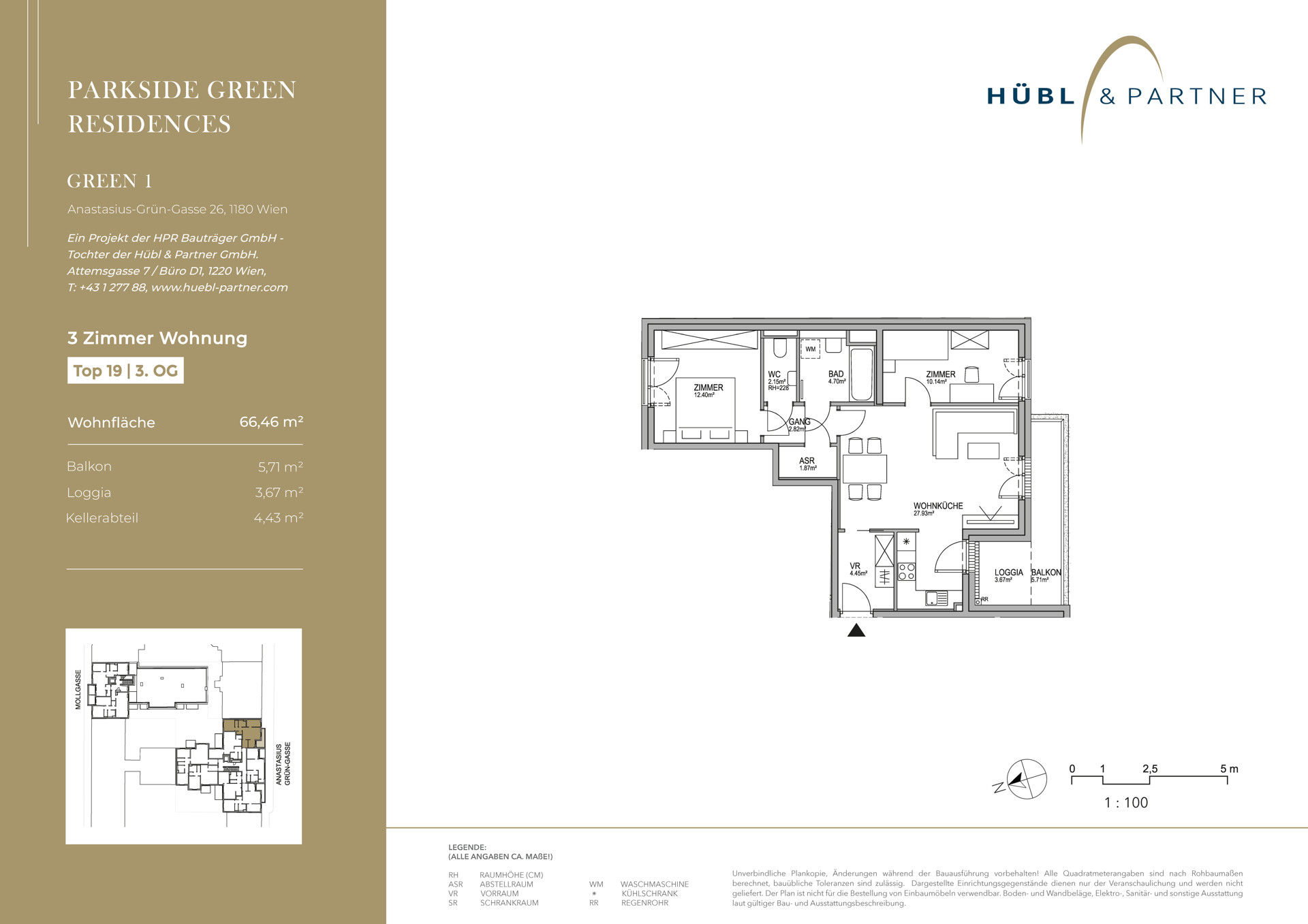 Die 3-Zimmer Wohnung TOP 1.19 im 3. Obergeschoß bietet eine Verbindung zum Währinger Park. Erreichbar über einen Spazierweg im hauseigenen Innenhof.