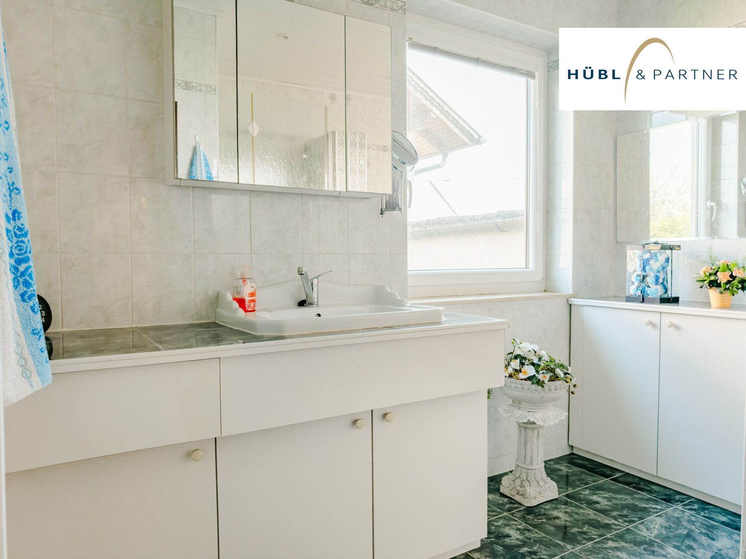 Ca. 114 m² Wohnfläche im Erdgeschoss (Wohnbereich, 2 Schlafzimmer, Küche mit Esszimmer & Speis, Dusch&Wannenbad & WC extra).