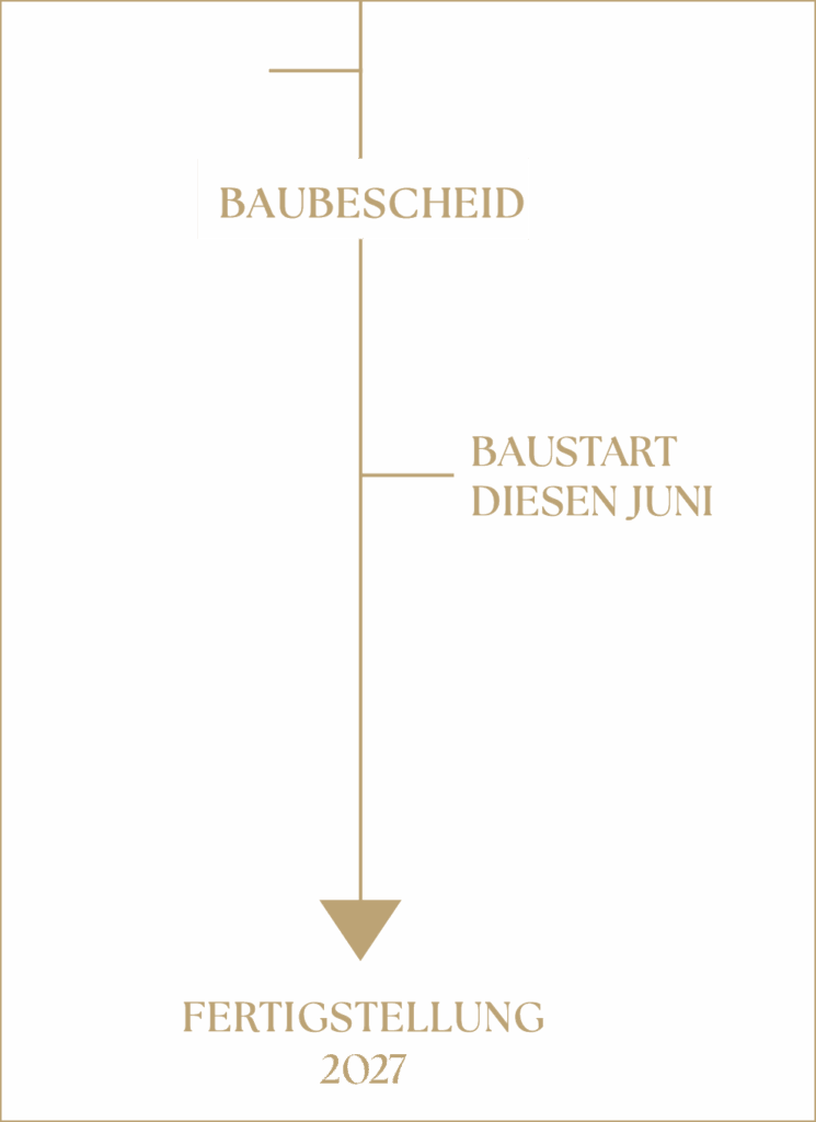 Graphische Zeichnung mit Zeitleiste und Fertigstellung Baufortschritt Neubauprojekt Mollgasse