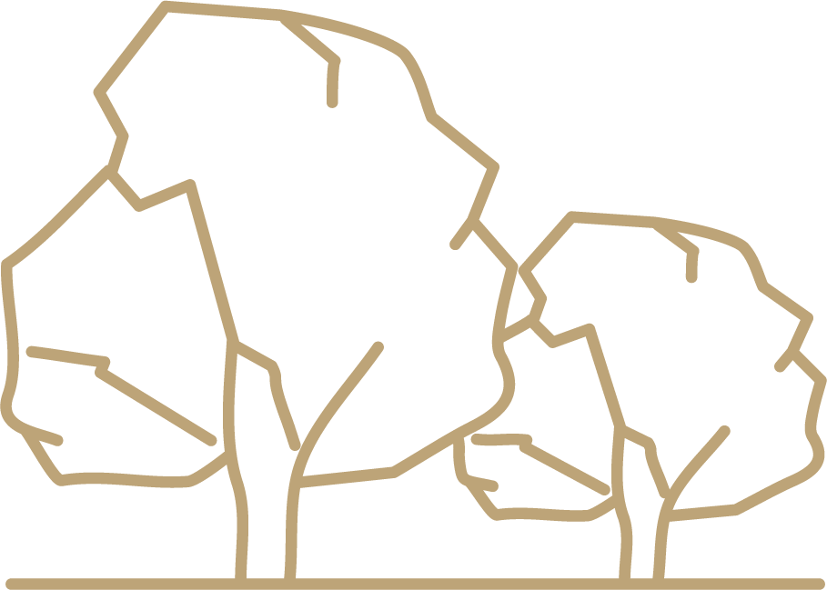 Graphische Illustration von zwei Bäumen in goldener Konturlinie